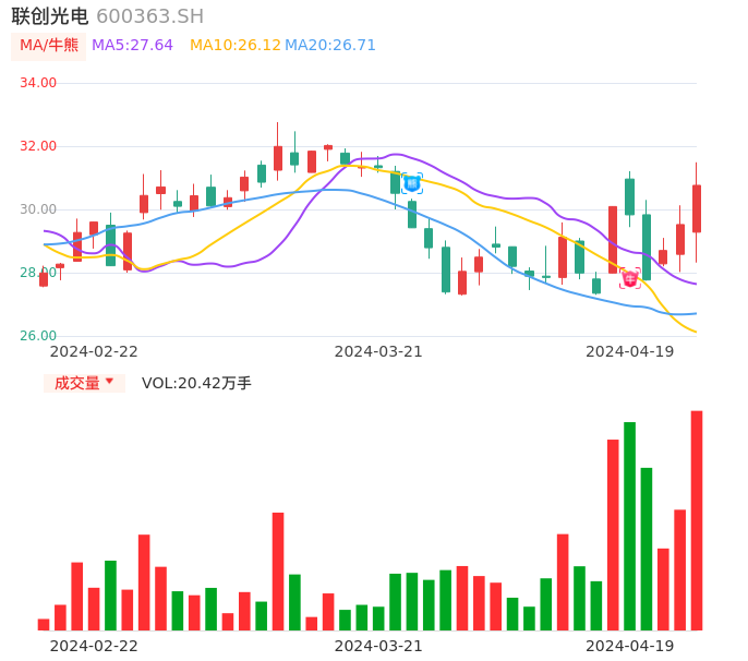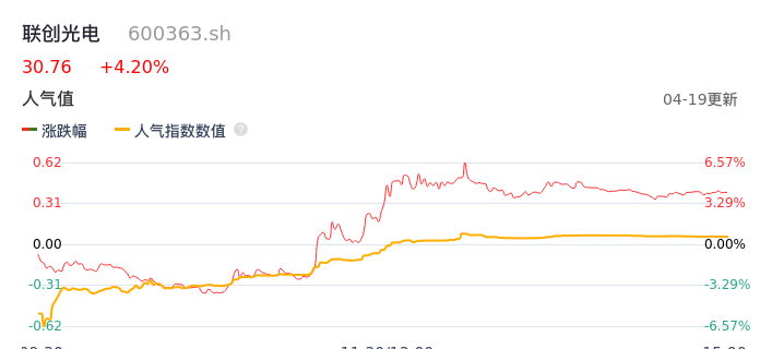 04月19日,联创光电收报30.76,股价涨幅4.20%,成交金额6.15亿元,换手率4.49%。