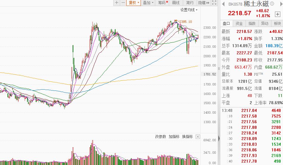 事件驱动:消息面上,特斯拉公司首席执行官埃隆·马斯克22日表示,其“擎天柱”人形机器人的生产受到了中国对稀土磁体出口限制的影响。特斯拉正在与北京方面合作,以获得使用稀土磁体的出口许可证。稀土永磁概念股震荡拉升,金力永磁涨超10%,龙磁科技、正海磁材、德宏股份涨超5%,银河磁体、中科三环、大地熊、宁波韵升、英洛华等跟涨。