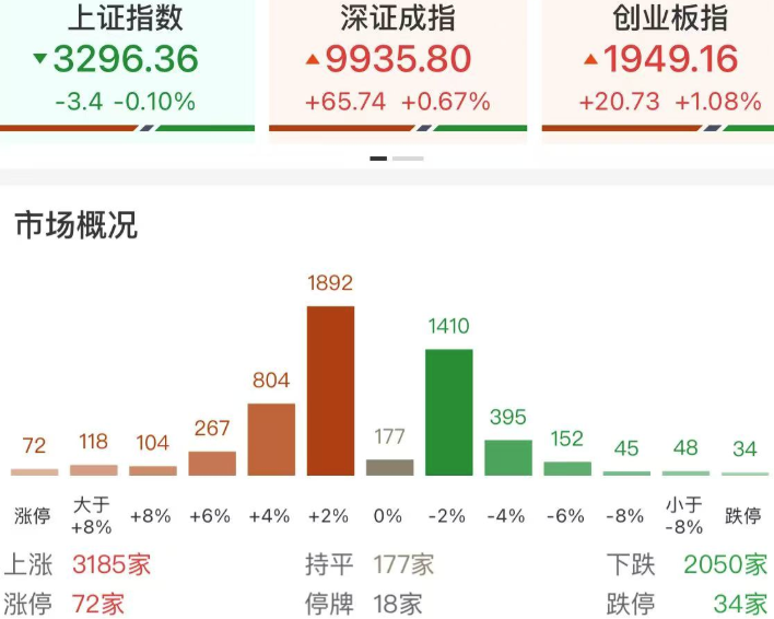 市场情绪:成交量温和释放,三大指数分化,沪指激烈争夺3300点,创业板领涨,科技题材补涨,机器人概念现涨停潮;市场热点快速轮动,个股涨多跌少,全市场超3100只个股上涨。今日共61股涨停,连板股总数11只,34股封板未遂,封板率为64%(不含ST股、退市股)。焦点股方面,连云港走出14天9板,但其余高位股大面积退潮,国芳集团、红宝丽、安记食品、亚联机械等跌停。