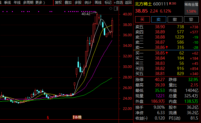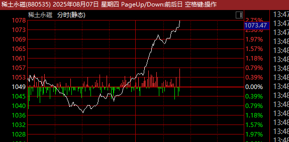 此外,市值约1400亿元的北方稀土也强势拉升,截至发稿涨超6%。