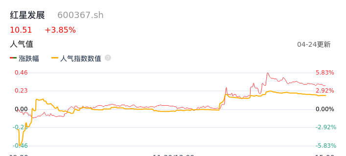 04月24日,红星发展收报10.51,股价涨幅3.85%,成交金额6645.94万元,换手率2.19%。