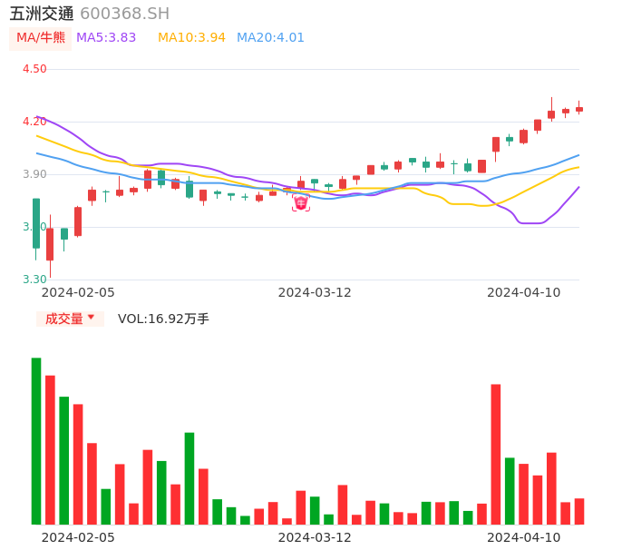 04月10日,五洲交通收报4.28,股价涨幅0.23%,成交金额7240.04万元,换手率1.37%。