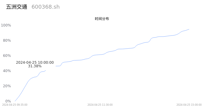 600368五洲交通2024年04月25日成交15.49万手,成交金额6710.35万元,相较昨日放量1.46万手,换手率1.25%,成交清淡。