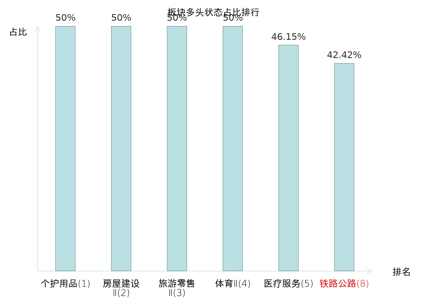 全市场所有行业板块中主力多头状态占比排名中,个护用品板块位居第一。影视院线板块名次提升最快,较昨日上升56位。
