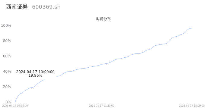 600369西南证券2024年04月17日成交43.80万手,成交金额1.63亿元,相较昨日放量1.30万手,换手率0.69%,成交清淡。