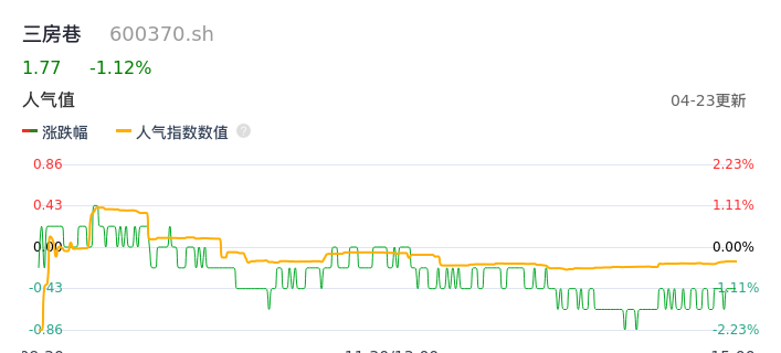 04月23日,三房巷收报1.77,股价涨幅-1.12%,成交金额1056.95万元,换手率0.15%。