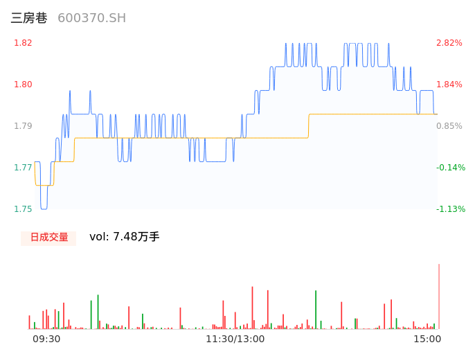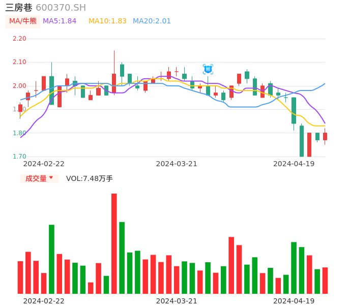 04月19日,三房巷收报1.80,股价涨幅1.69%,成交金额1340.76万元,换手率0.19%。