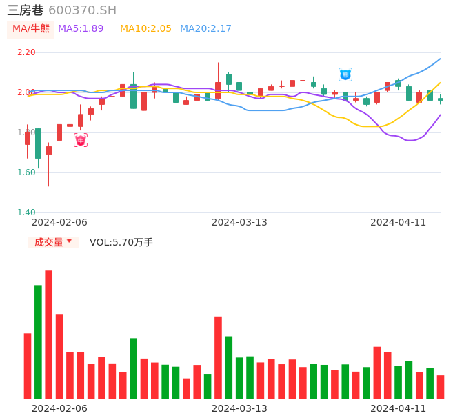 04月11日,三房巷收报1.96,股价涨幅0.00%,成交金额1122.36万元,换手率0.15%。