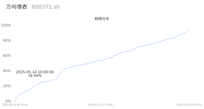 600371万向德农2025年05月14日成交10.36万手,成交金额9618.49万,相较昨日缩量2.20万手,换手率3.54%,成交清淡。