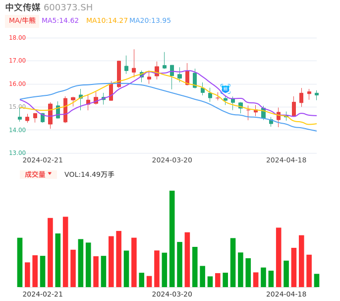 04月18日,中文传媒收报15.51,股价涨幅-0.96%,成交金额2.25亿元,换手率1.07%。