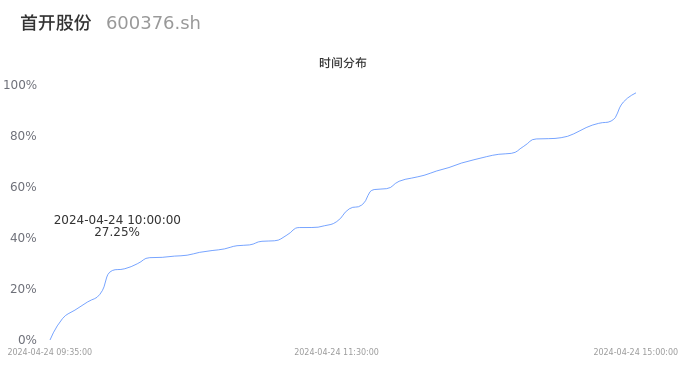 根据成交分布分析,该股票当天放量成交,成交清淡。时间上看,早盘前半小时成交量占据当天总成交量的27.25%;价格上看,成交呈现无峰态。成交分布分析主要研究股票成交的分布特性,不具有预测功能,请知悉。