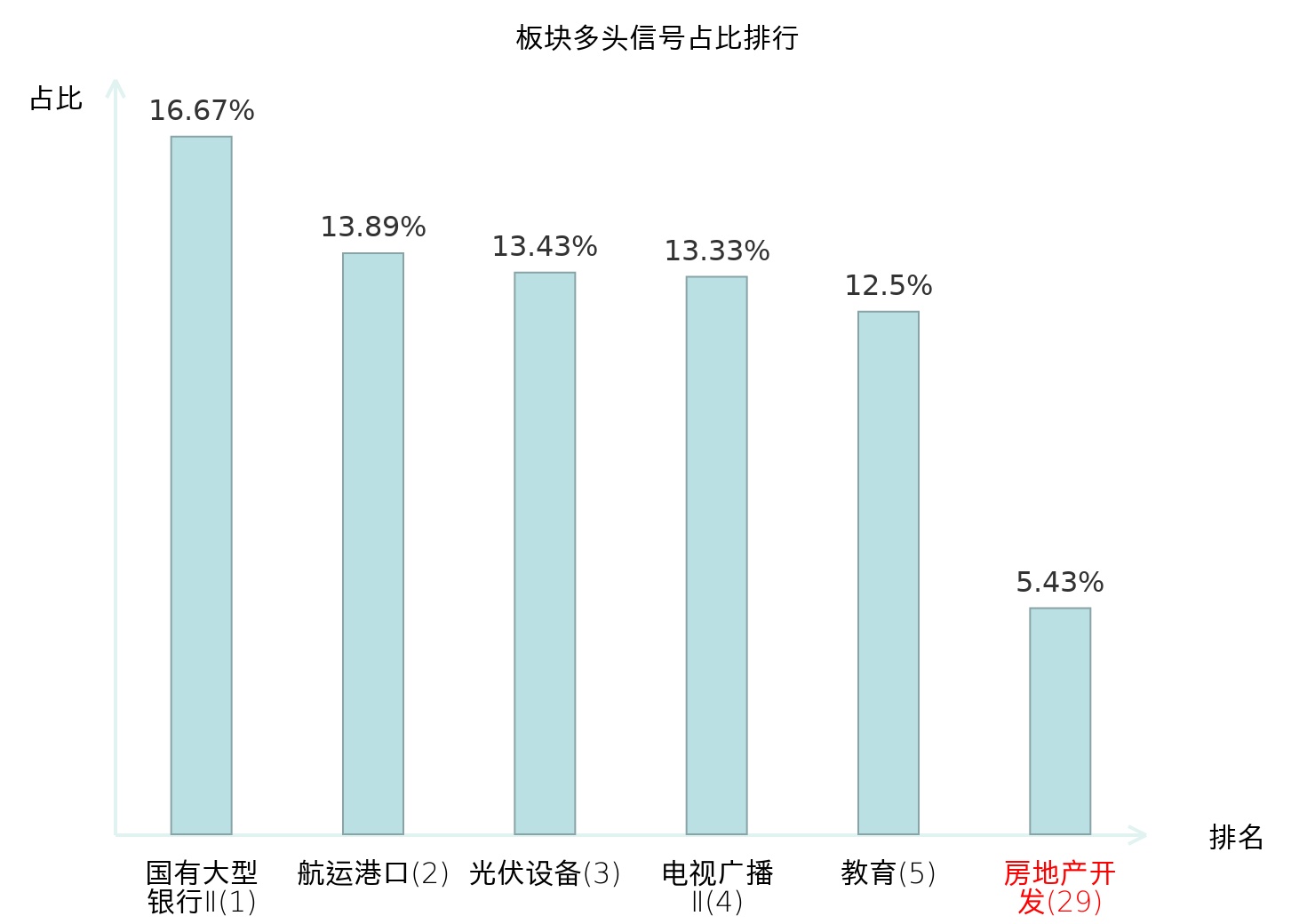 全市场所有行业板块中主力多头信号占比排名中,国有大型银行Ⅱ板块位居第一。国有大型银行Ⅱ板块名次提升最快,较昨日上升124位。