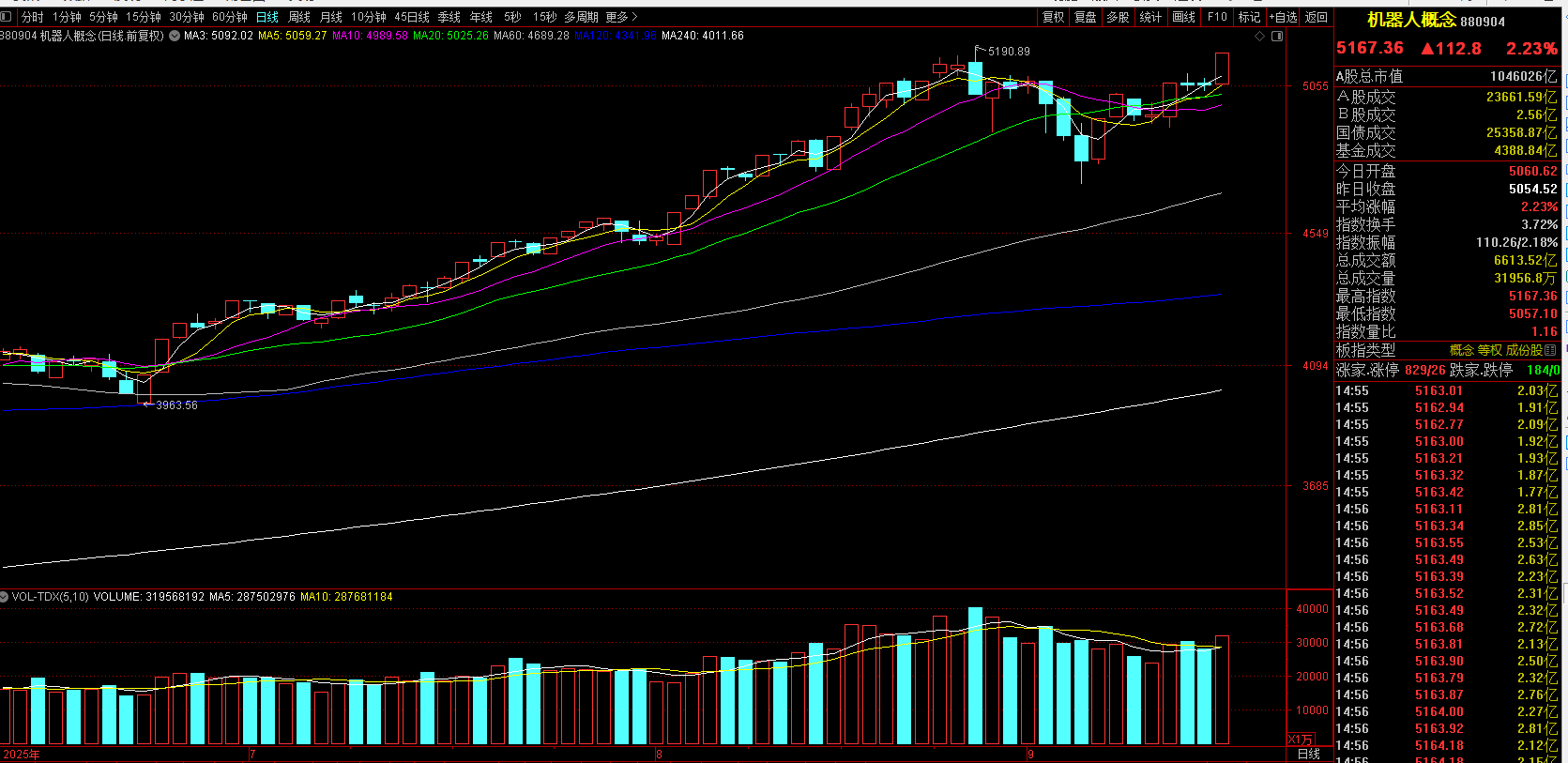 日内整体强度领先明显,消息面上,9月15日,宇树科技宣布开源UnifoLM-WMA-0——跨多类机器人本体的开源世界模型-动作架构。宇树科技介绍,UnifoLM-WMA-0专为通用机器人学习而设计,其核心成分在于一个可以理解机器人与环境交互物理规律的世界模型。