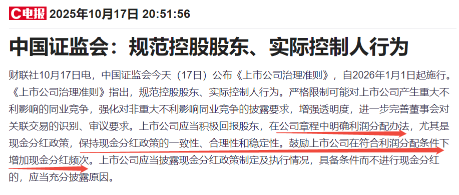 红利板块今天除了前半小时受AI大涨的影响回落,后面3个半小时整体都在震荡高走,收盘收出长长的下引线。上周五发布的【上市公司治理准则】其中提到了鼓励上市公司在符合利润分配的条件下增加分红,对于红利板块来说这无疑是一大利好,同时市场处于低风偏的风格下,也是红利板块近期表现不错的原因之一。
