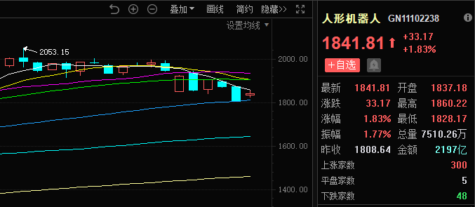 我们说说人形机器人方向,下午是有消息刺激了一下,但是可以看到资金并没有有效的发力,只有一个卧龙电驱拉升的比较明显一些,另外则是之前和宇树参股相关的首开股份涨停,一部分机器人股拉,一部分机器人个股跌,近期机器人的板块消息频频,但是始终没有形成比较规模性的炒作。这个位置即将回踩我们之前反复提到的60日中长线均线支撑的位置,需观察是否在此放量,走出底部企稳的迹象。