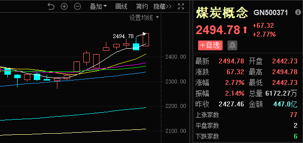走的最好的2个红利方向都在咱们近期的复盘文章中反复提及。午后燃气板块继续大幅拉升,板块涨超4%,多股涨停。煤炭概念同样下午指数回落,它也是逆势进一步走高的,近期煤炭、燃气板块合计十余股涨停,其中煤炭这边,有涨停高度,有龙头个股,有短线连板,有趋势连阳,也有低位补涨,板块整体内的做多资金还是比较健康的,就目前来上煤炭和燃气在红利中依旧有不错的机会。