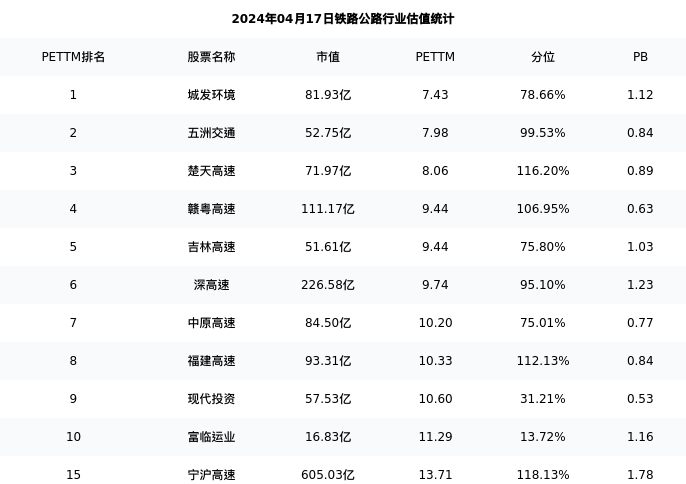 从估值角度看:宁沪高速最新市盈率PETTM为13.71,在行业内排名15/34,处于118.13分位。