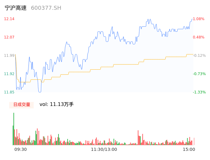 04月17日,宁沪高速收报12.14,股价涨幅1.08%,成交金额1.34亿元,换手率0.29%。