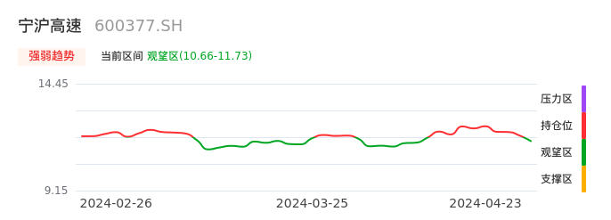 我们来看一下该股的九方特色指标强弱趋势的情况:宁沪高速近日从持仓区下穿到观望区,股价出现持续性调整行情。短期已经转为空头行情,且下跌动能仍未衰竭。建议继续谨慎观望。