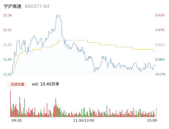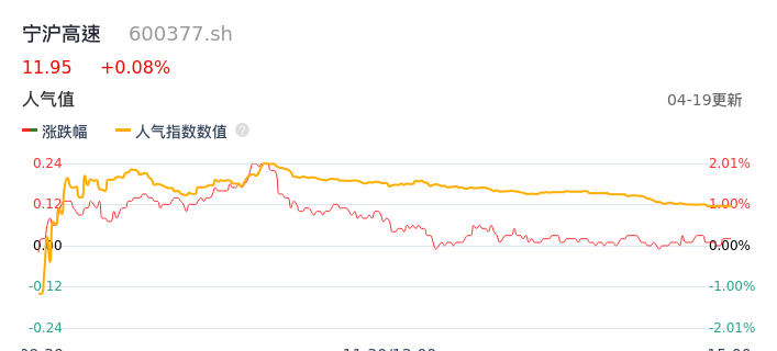 04月19日,宁沪高速收报11.95,股价涨幅0.08%,成交金额1.25亿元,换手率0.27%。
