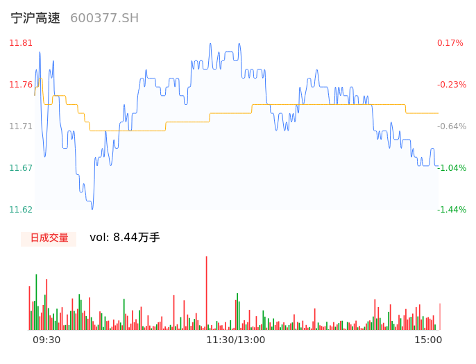 04月12日,宁沪高速收报11.69,股价涨幅-0.85%,成交金额9895.06万元,换手率0.22%。