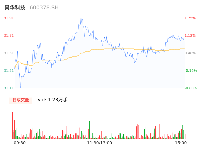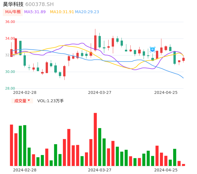 04月25日,昊华科技收报31.66,股价涨幅0.96%,成交金额3886.58万元,换手率0.14%。