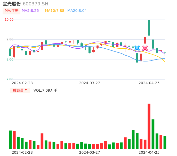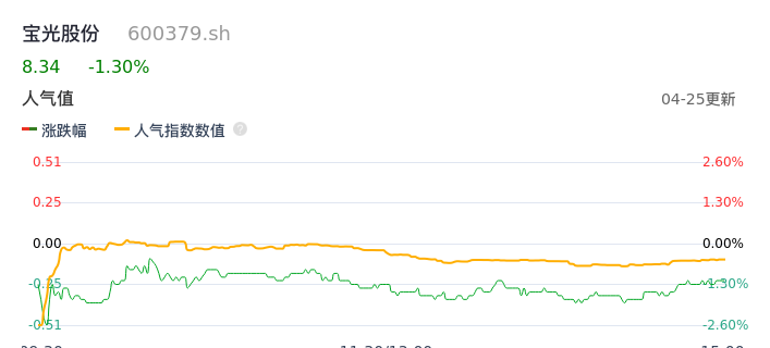 04月25日,宝光股份收报8.34,股价涨幅-1.30%,成交金额5904.87万元,换手率2.15%。