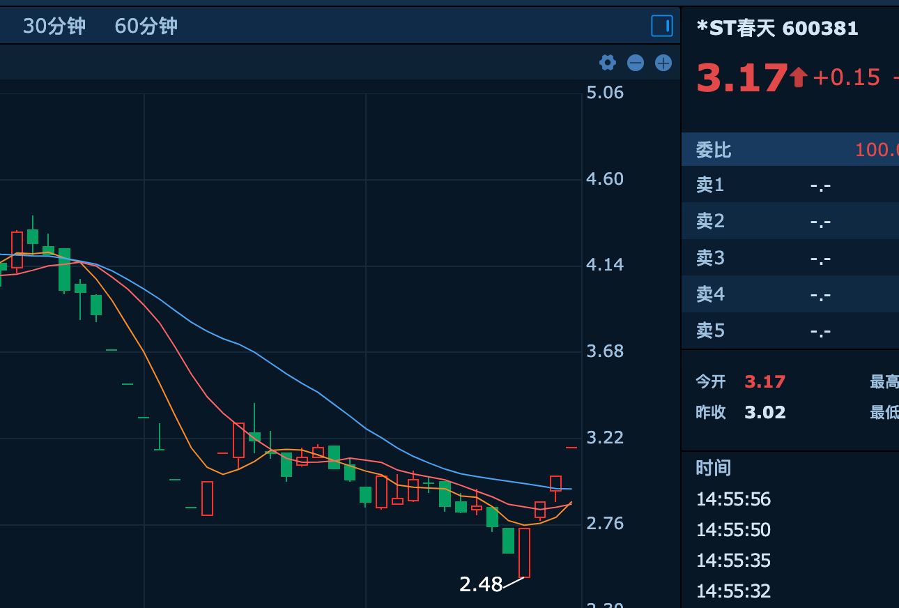 近日,沪深个股普遍走势羸弱,股价频频下挫。不过,*ST春天(600381)似乎迎来一轮“春天”,该股已经连续四个交易日(3月16日—19日)涨停,股价逆势重回3元以上。