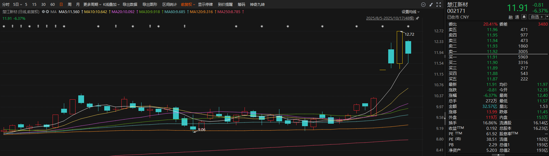 财联社10月18日讯(编辑 若宇)A股三季报行情如火如荼,披露2025年三季报业绩预告次日,楚江新材和粤桂股份一字涨停;远大智能、穗恒运A和有研新材收盘涨停;上周四盘后发布业绩预增公告后,广东明珠周五收盘6天3板;周二盘后披露业绩预增公告后,通达股份周四收盘两连板。