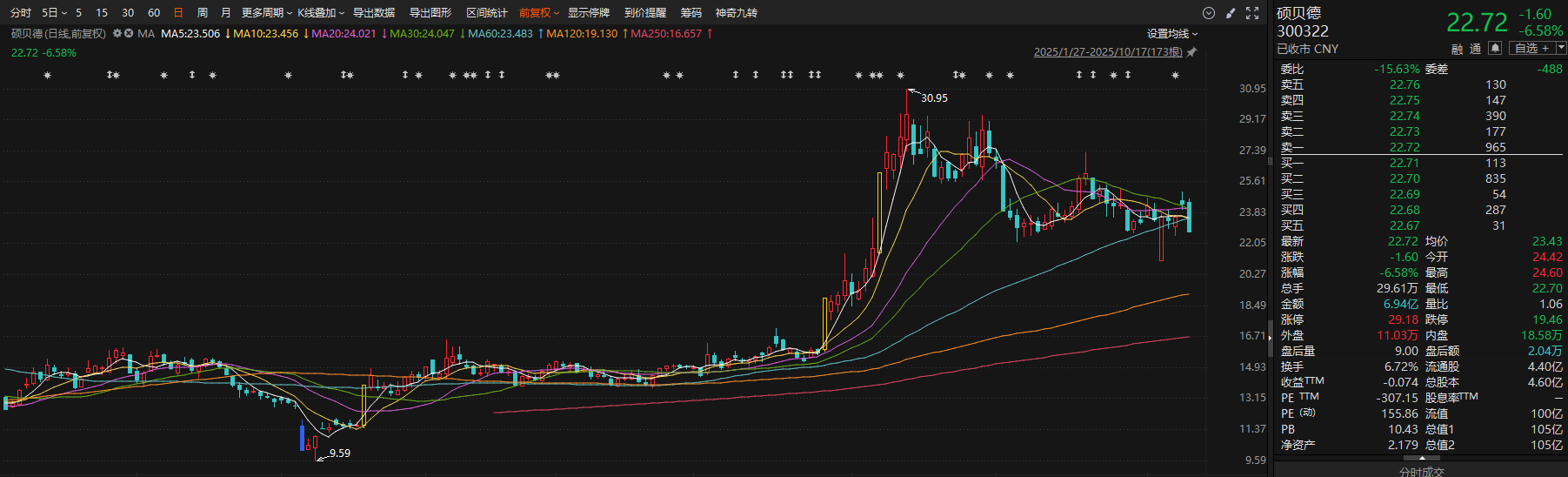 硕贝德发布2025年前三季度业绩预告,预计归属于上市公司股东的净利润为4953.08万元—5153.08万元,比上年同期增长1258.39%-1313.24%。2025年第三季度盈利1600万元—1800万元,比上年同期增长2836.86%-3203.96%。报告期内,公司持续挖潜增效、优化业务结构,主要产品量产交付规模大幅提升,整体业绩实现高速增长。第三季度,智能穿戴天线等产品与国内知名AI眼镜客户的合作进入量产阶段。车载天线和线束业务保持快速发展态势,净利润实现数倍增长;车载天线取得某国际知名汽车厂商的全球供应商资质,线束业务获得国内知名汽车客户的电池包线束项目定点。热虹吸和PCS液冷板等产品实现小批量出货;游戏机SOC散热模组达到量产高峰;同时积极拓展服务器液冷等业务。二级市场方面,硕贝德自今年4月低点迄今股价累计最大涨幅达222.73%。