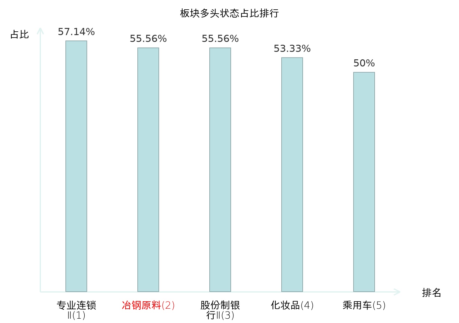 全市场所有行业板块中主力多头状态占比排名中,专业连锁Ⅱ板块位居第一。房地产服务板块名次提升最快,较昨日上升52位。