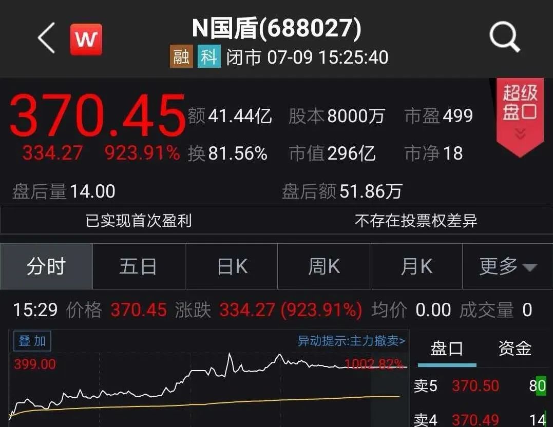 7月9日上市的科创板新股国盾量子,上市首日大涨923.91%,盘中涨幅更是一度达到1000%,上演了“一天涨10倍”的神话。