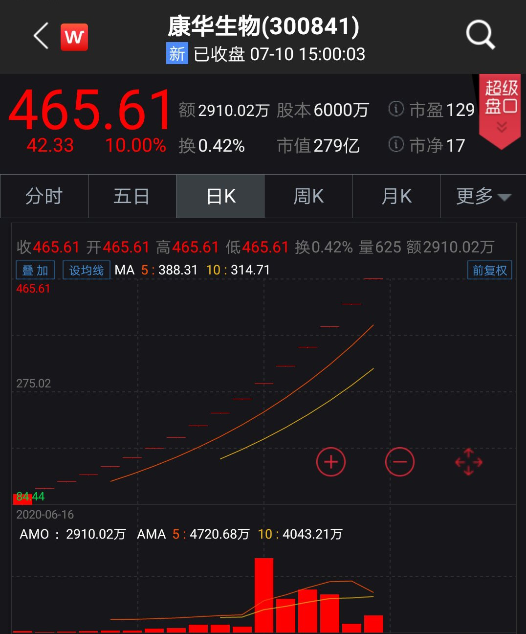 6月16日上市的创业板新股康华生物,目前已经取得了17个一字连板,单签盈利达19.76万元,且目前仍未开板。康华生物既是今年以来最赚钱的新股,也是自2014年实行新股上市首日涨跌幅限制以来A股最赚钱的新股。