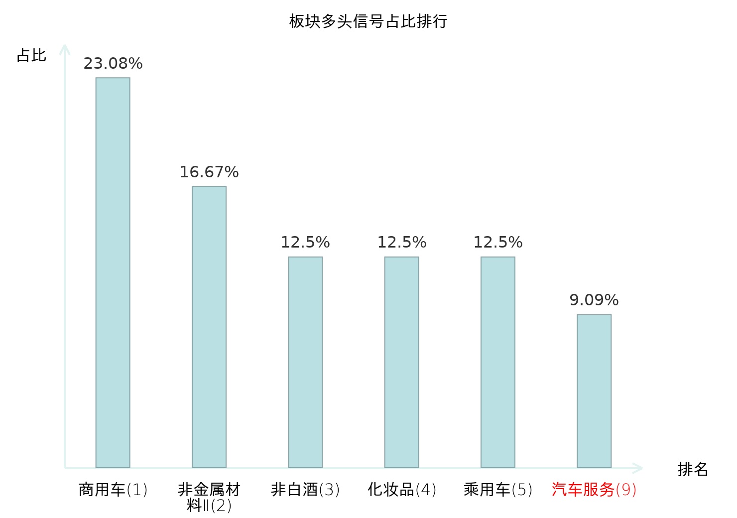 从主力宝信号数据分析,北巴传媒所属的汽车服务板块中共有1只股票发出主力多头信号,主力多头信号占比在全行业中排名第9位,较昨日上升了103位。排名越高表明主力当日买入意愿越强,此次排名上升可能反映了主力对该板块态度的积极变化。全市场所有行业板块中,商用车板块的主力多头信号占比最高,位居第一。商用车板块名次提升最快,较昨日上升了106位。这些变动揭示了不同行业间主力资金动向的趋势,为投资者提供了关于市场情绪和潜在投资机会的重要线索。