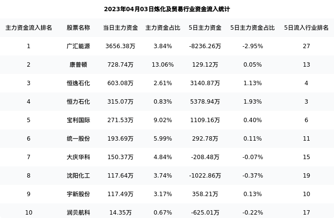 从主力资金流向来看,炼化及贸易行业今日主力资金流入43.95亿元,在所有申万二级行业中排名:60/131。
