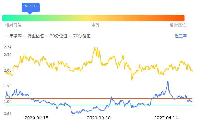 海越能源当前市净率PB为0.99,在所属的炼化及贸易中,市净率PB排6,前五名分别为华锦股份市净率0.82、桐昆股份市净率0.92、中国石油市净率0.92、中国石化市净率0.93、沈阳化工市净率0.95。海越能源当前市净率PB为0.99,超过近3年51.52%的历史数据。