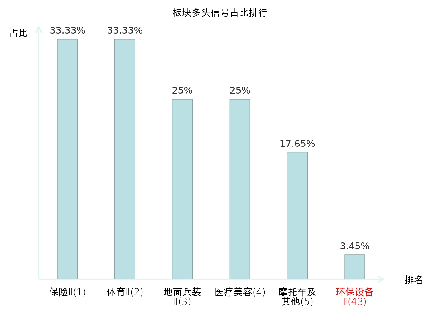 全市场所有行业板块中主力多头信号占比排名中,保险Ⅱ板块位居第一。体育Ⅱ板块名次提升最快,较昨日上升128位。