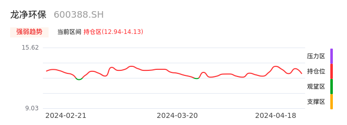 我们来看一下该股的九方特色指标强弱趋势的情况:龙净环保自03月26日从观望区上穿到持仓区。股价近期在多头区域回调整理。后续重点关注多空分界点的争夺:12.94元。如未能有效站稳则可能重新回到空头行情。
