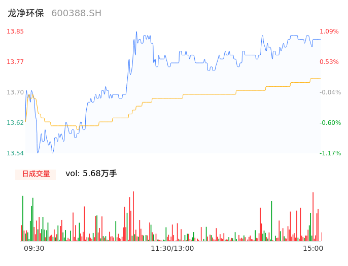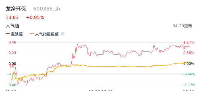 04月29日,龙净环保收报13.83,股价涨幅0.95%,成交金额7799.84万元,换手率0.53%。