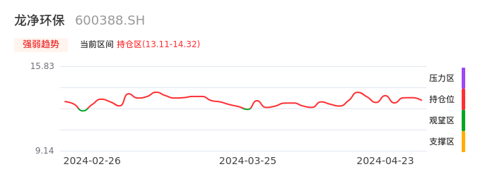 我们来看一下该股的九方特色指标强弱趋势的情况:龙净环保自03月26日从观望区上穿到持仓区。股价近期在多头区域回调整理。后续重点关注多空分界点的争夺:13.11元。如未能有效站稳则可能重新回到空头行情。