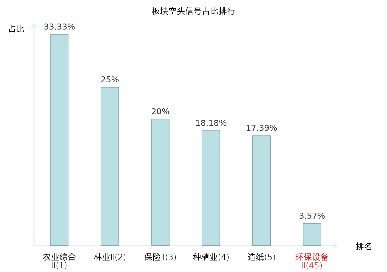 全市场所有行业板块中主力空头信号占比排名中,农业综合Ⅱ板块位居第一。炼化及贸易板块名次提升最快,较昨日上升115位。