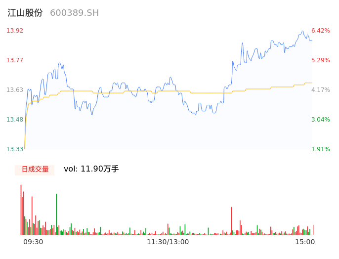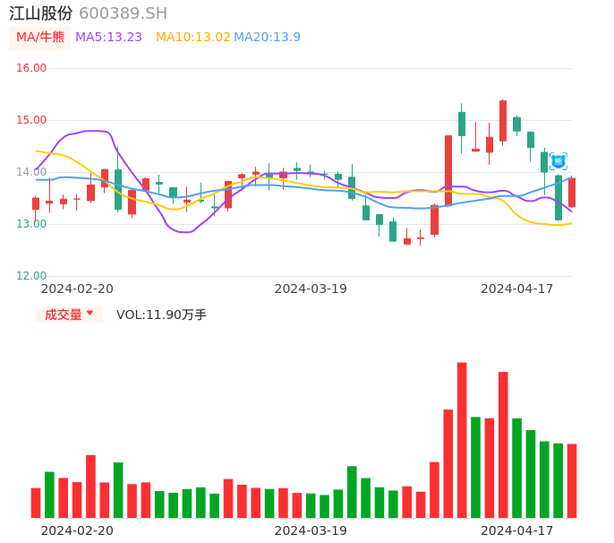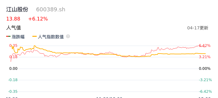 04月17日,江山股份收报13.88,股价涨幅6.12%,成交金额1.63亿元,换手率2.76%。