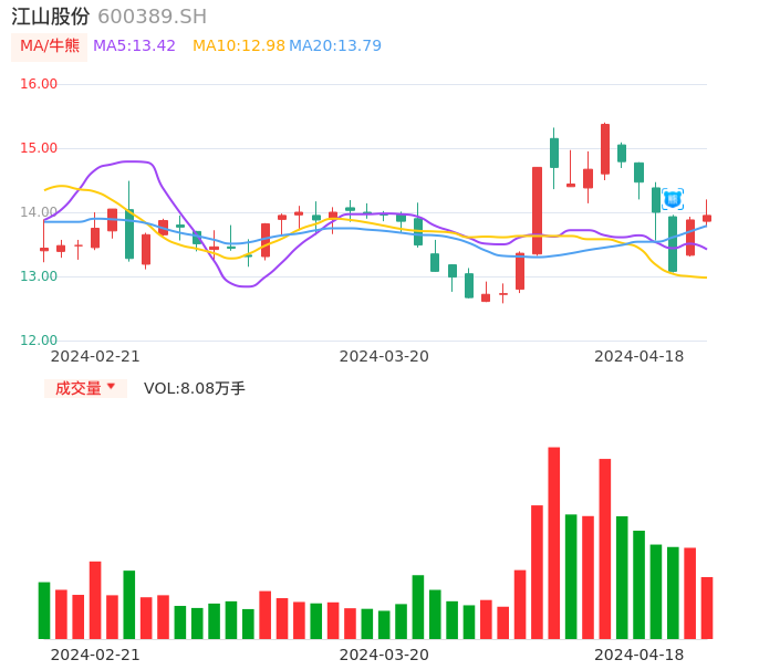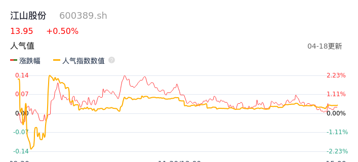 04月18日,江山股份收报13.95,股价涨幅0.50%,成交金额1.13亿元,换手率1.88%。