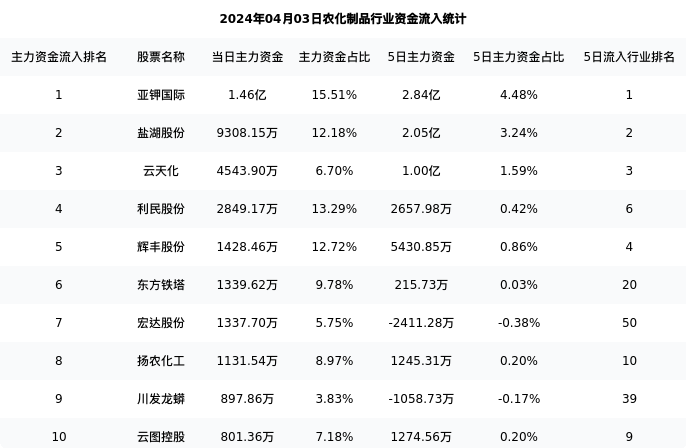 从主力资金流向来看,农化制品行业今日主力资金流入30.61亿元,在所有申万二级行业中排名:95/131。