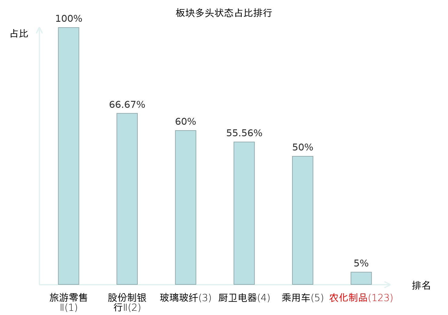 全市场所有行业板块中主力多头状态占比排名中,旅游零售Ⅱ板块位居第一。航天装备Ⅱ板块名次提升最快,较昨日上升91位。