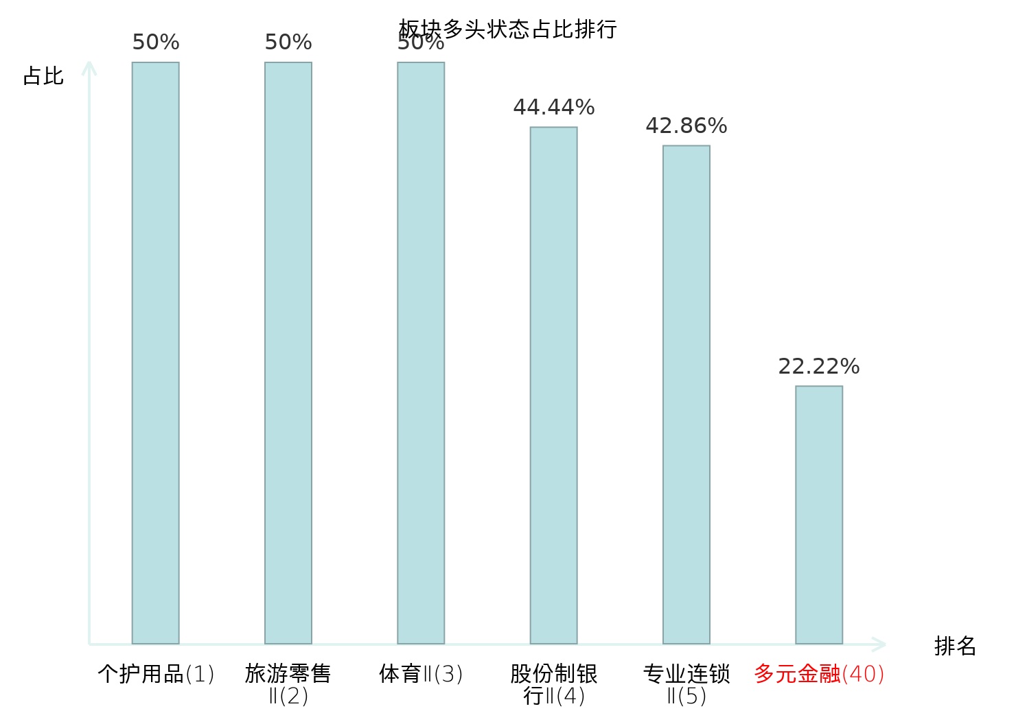 全市场所有行业板块中主力多头状态占比排名中,个护用品板块位居第一。非金属材料Ⅱ板块名次提升最快,较昨日上升37位。