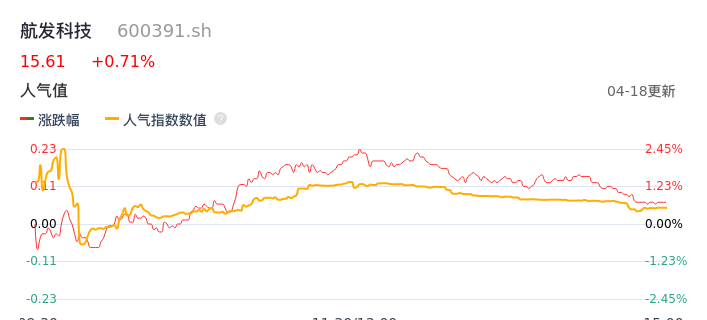 04月18日,航发科技收报15.61,股价涨幅0.71%,成交金额7196.66万元,换手率1.39%。