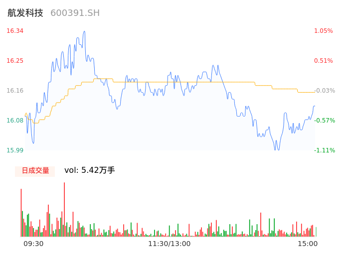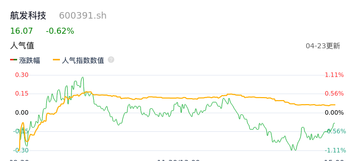 04月23日,航发科技收报16.07,股价涨幅-0.62%,成交金额8759.80万元,换手率1.64%。
