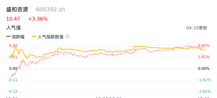 04月29日,盛和资源收报10.47,股价涨幅3.36%,成交金额4.03亿元,换手率2.23%。