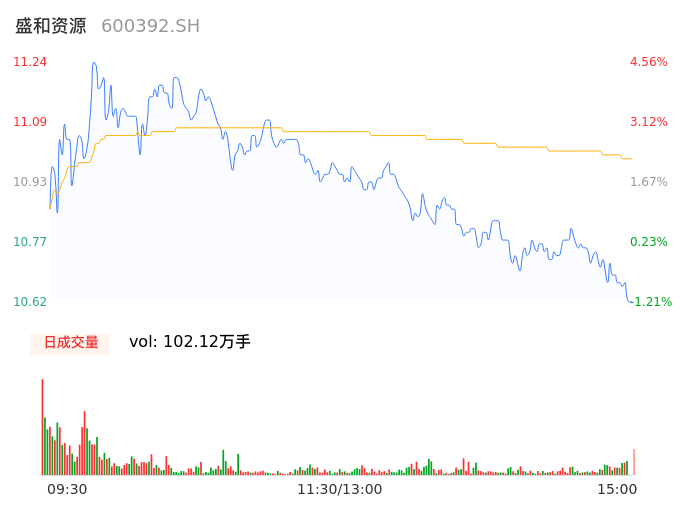 04月08日,盛和资源收报10.73,股价涨幅-0.19%,成交金额11.22亿元,换手率5.83%。